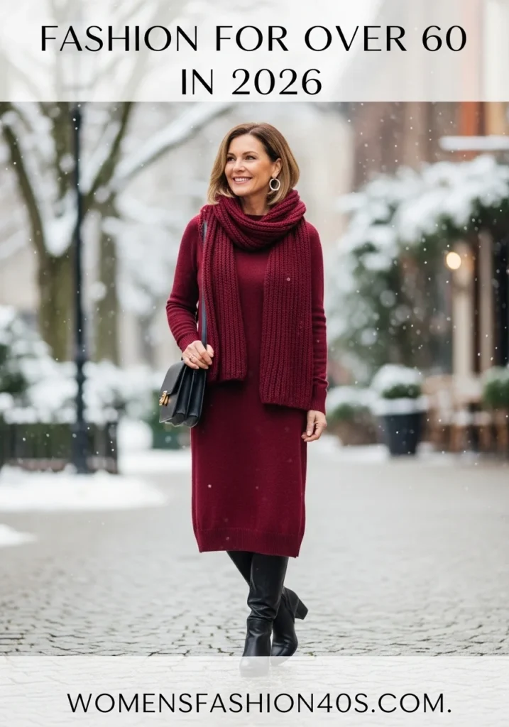 Soft, warm, and easy to style, this one-piece wonder became my winter go-to. Pinterest data shows “neutral sweater dress over 60” pins up 42% in 2026.