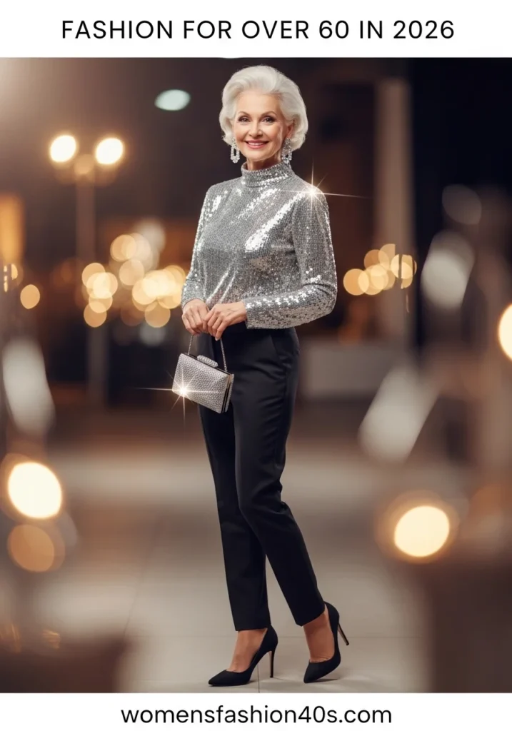 I wore this to a charity gala—it shimmered just right under the lights. According to Pinterest, sequin outfits for older women are up 55% for 2026’s event season.