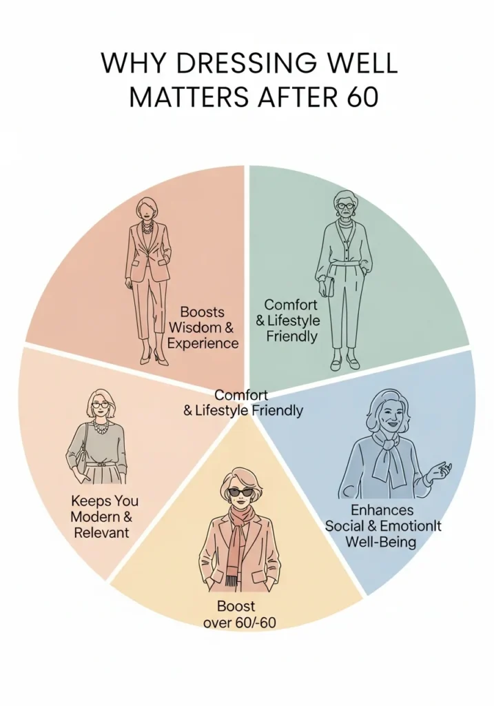 Whether you’re attending a brunch, traveling, visiting family, or simply running errands, dressing well helps you feel more connected and engaged. Feeling good about your appearance increases positivity, boosts social interactions, and reminds you that joy doesn’t retire at 60.
