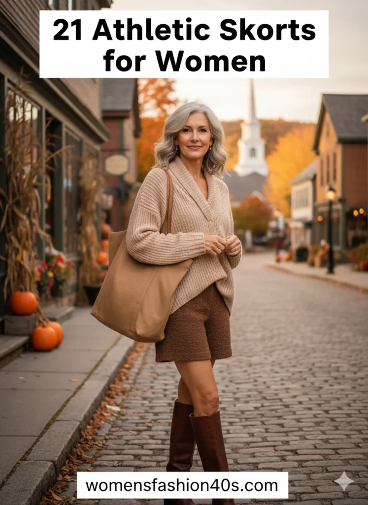 This was my cozy fall look in Vermont. Pinterest shows “chunky knit with skirts/skorts” outfits are trending again—comfort and warmth meet effortless chic.