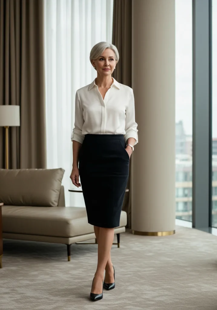 4. Chic Pencil Skirt and Blouse for Professional Elegance Elegant Outfits for Women Over 50