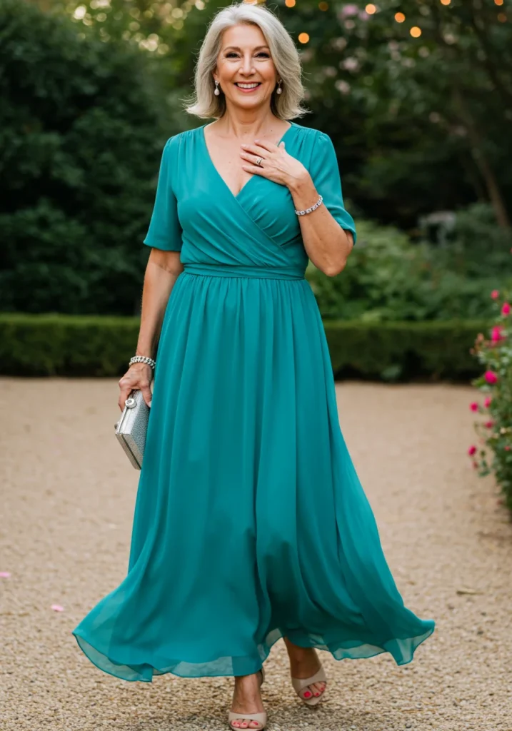 5. Timeless Teal Maxi Dress for Formal Celebrations Elegant Outfits for Women Over 50