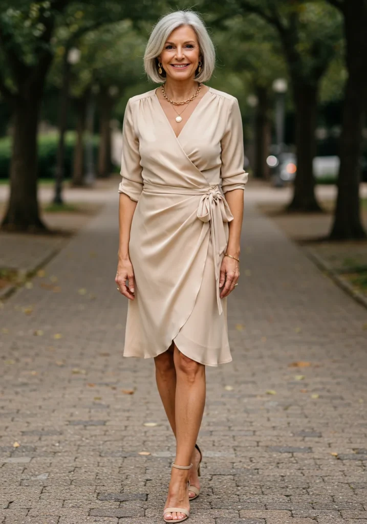 7. Elegant Silk Wrap Dress for a Glamorous Look Elegant Outfits for Women Over 50