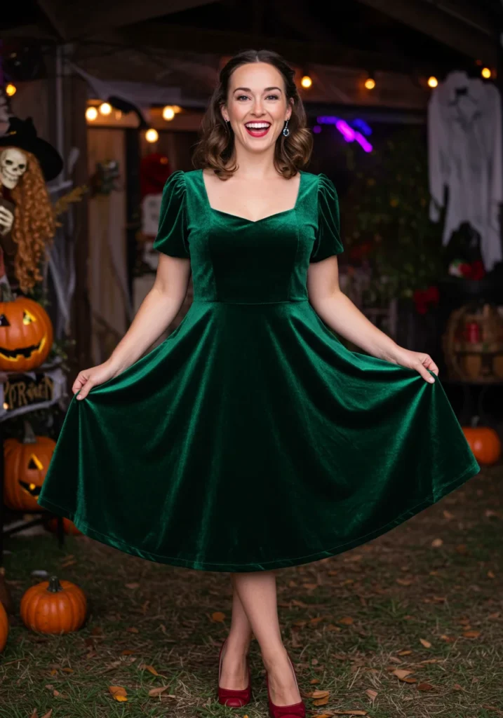 19. 🌿 Dorothy Forest Green Velvet Dress
