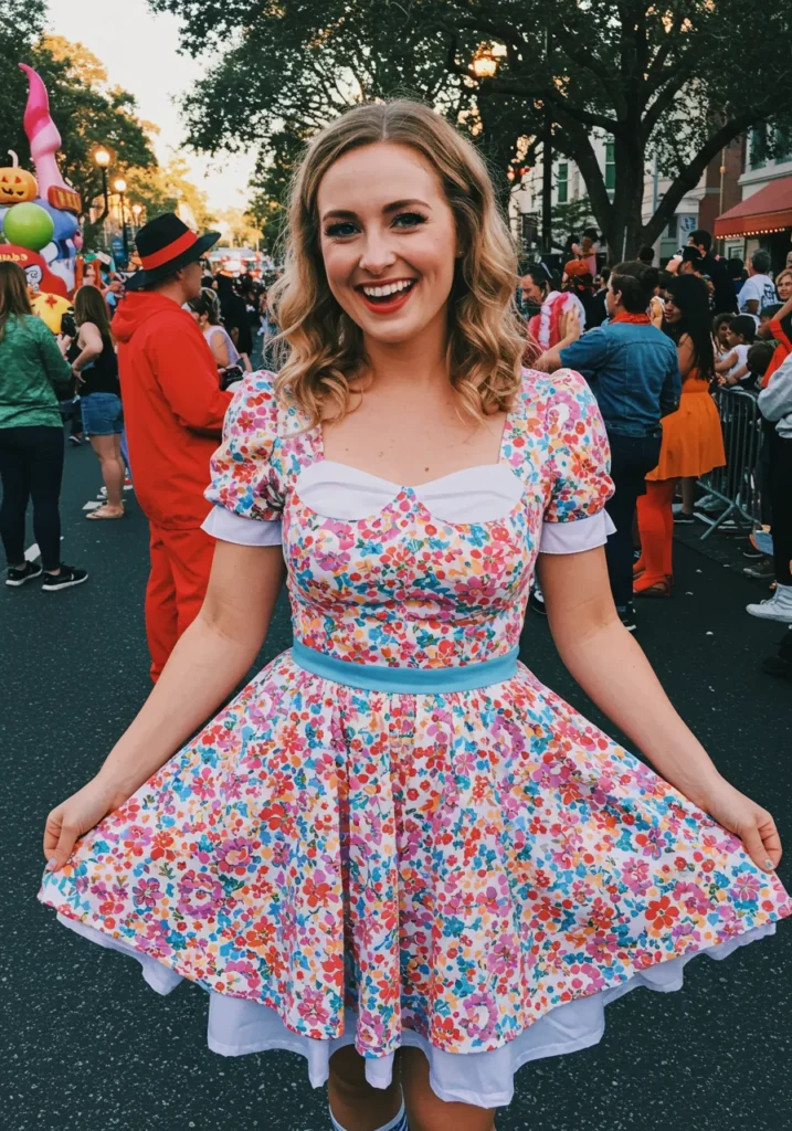 This floral print dress brings a fresh, whimsical take to the traditional Dorothy costume. The vibrant patterns and light fabric make it perfect for daytime Halloween events. I wore this to a daytime parade and felt cheerful and comfortable all day long.