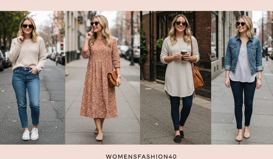 Over time, I curated 21 outfits that truly made mornings simpler while turning heads. From flowy dresses to tailored jeans paired with cozy sweaters, these easy mom outfits became my go-to formula for feeling stylish and confident without the stress.