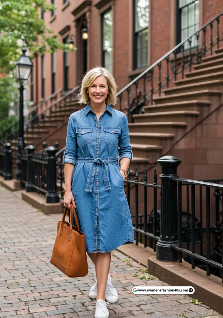 7. Chambray Shirt Dress with White Sneakers