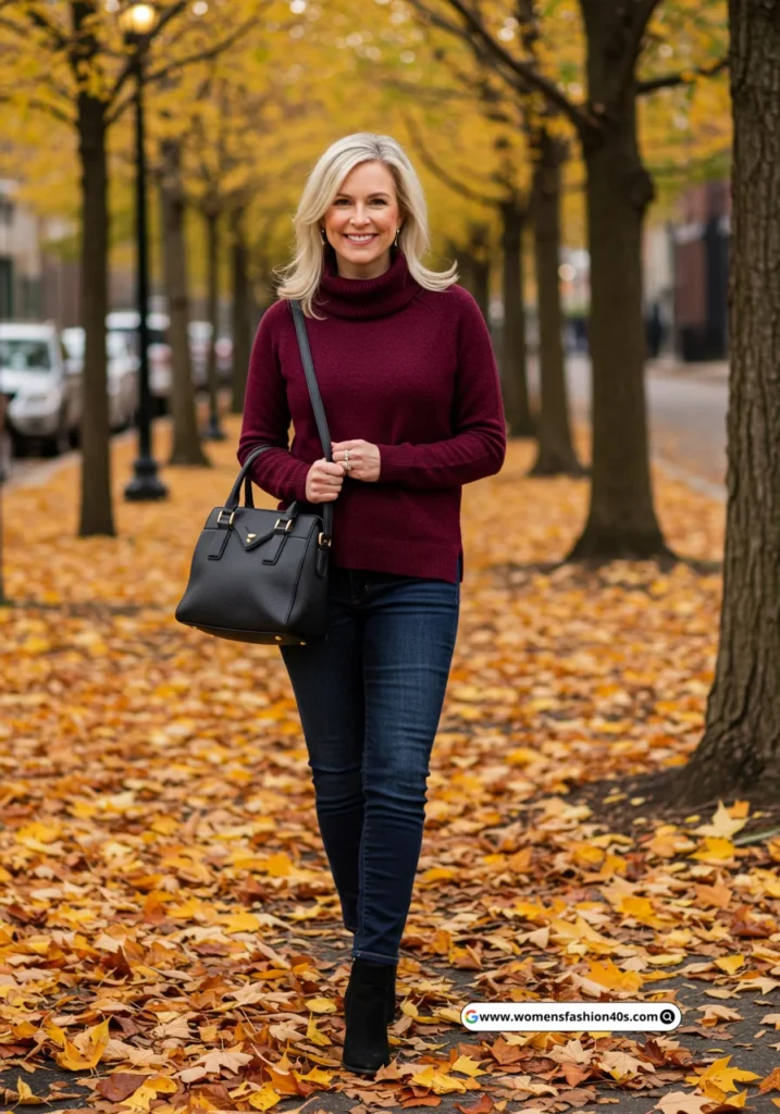 13. Burgundy Sweater with Black Jeans