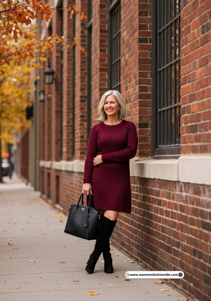 20. Burgundy Knit Dress with Black Boots