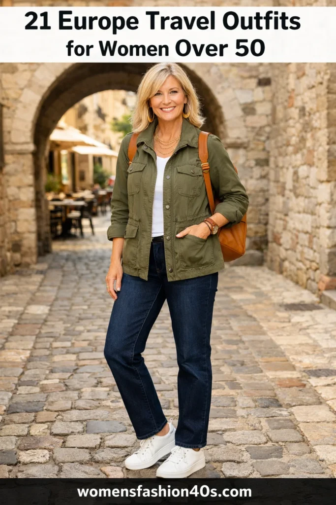 Shop Now From Amazon: (Olive Utility Jacket) + (Dark Wash Straight Jeans) + (White Leather Sneakers) + (Tan Backpack) Navigating historic streets requires practical footwear, but I never sacrifice style. This utility-inspired ensemble offers a modern edge with a flattering waist-cinching detail, keeping you comfortable for a full day of adventurous and stylish urban exploration.