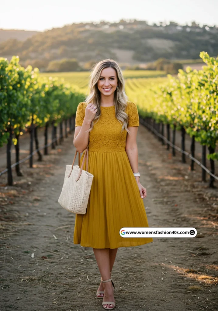 Amazon Link: Mustard Yellow Pleated Midi Dress