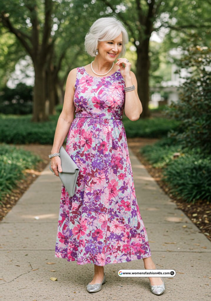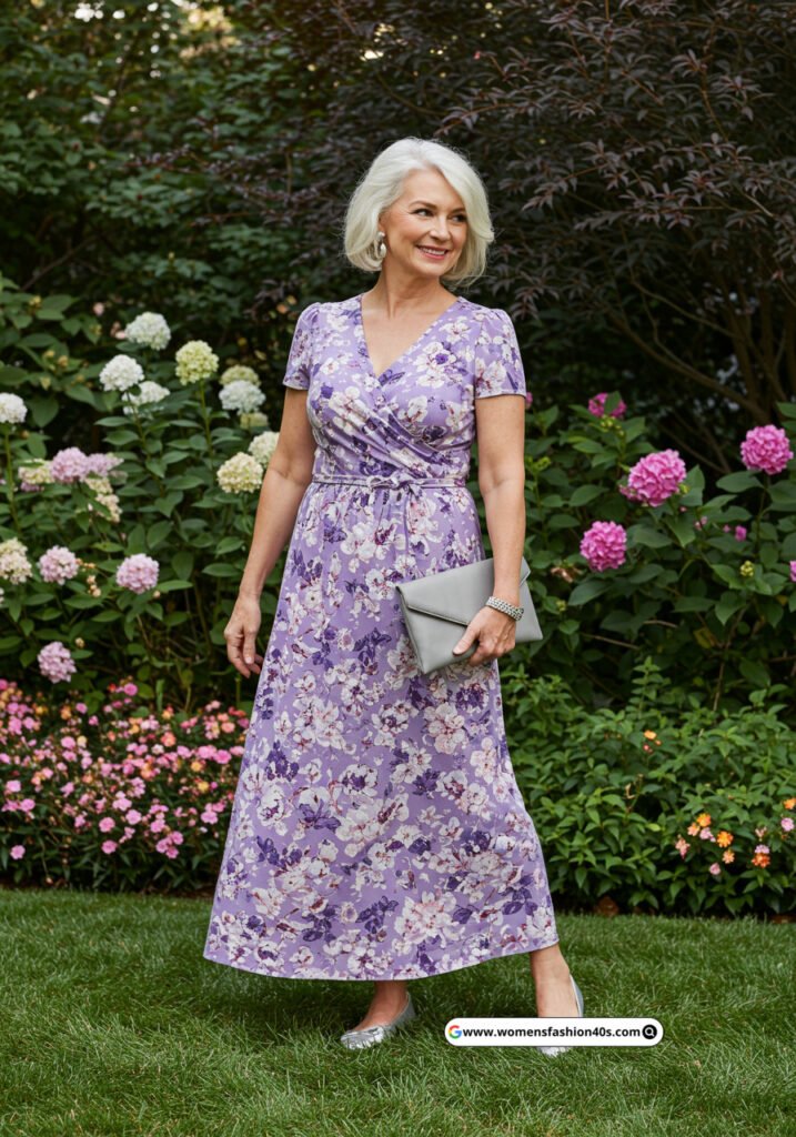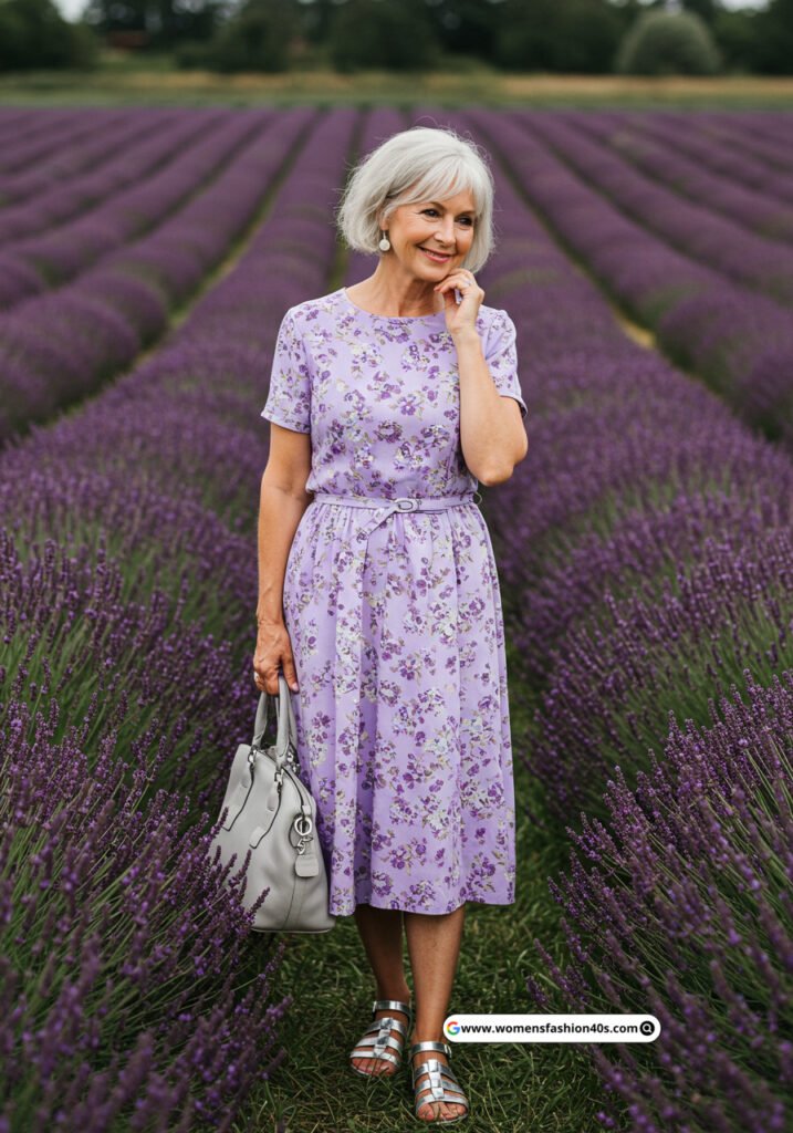 I love how this pastel floral elevates casual outings. Pinterest Trends highlight lavender florals as a chic choice for women embracing mature style.