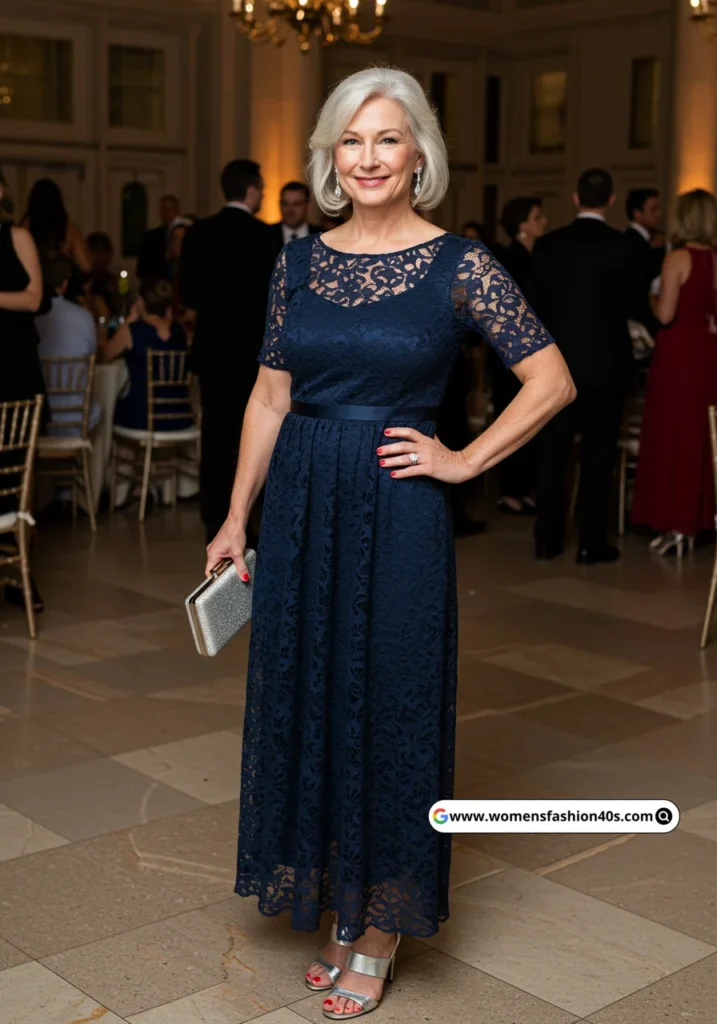 This dress was perfect for an evening gala in Washington, D.C. The lace detailing added elegance without overwhelming my frame. Statista shows lace formalwear continues to rise in popularity for women over 50.