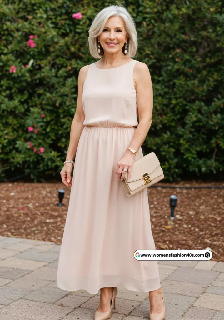 I wore this blush maxi dress to a charity gala in Los Angeles. The flowing fabric kept me comfortable and elegant. Google Trends shows blush pink maxi dresses gaining popularity among women over 50.