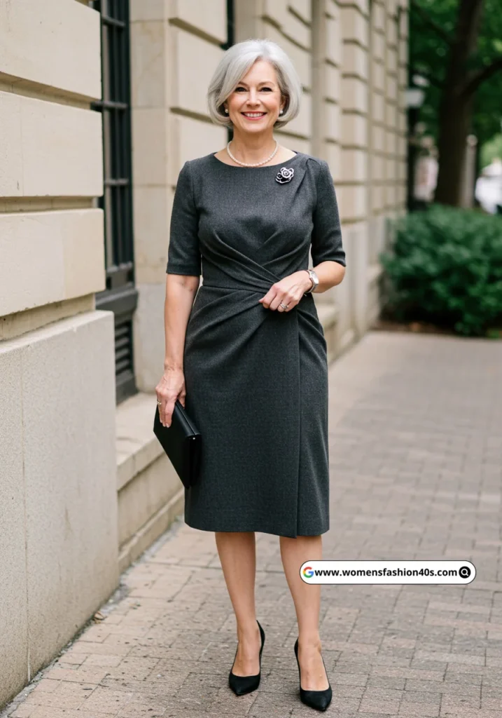 I chose this charcoal gray dress for a corporate gala. The minimalist design provided sophistication and effortless style. Google Trends shows muted colors are trending in formalwear for mature women.