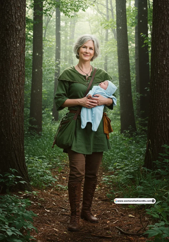 Shop Now from Amazon: Green Tunic + Brown Pants + Brown Boots + Blue Dress + Blue Baby Outfit + Green Bag