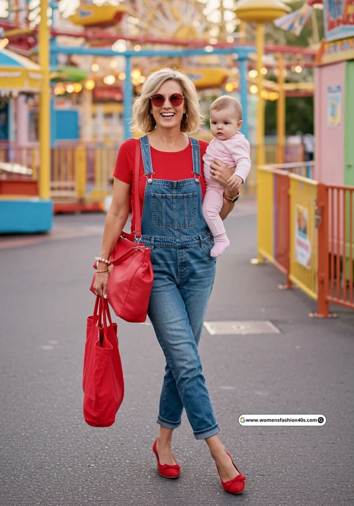 Shop Now from Amazon: Red Shirt + Blue Overalls + Green Shirt + Blue Overalls + Pink Dress + Red Shoes + Green Shoes + Pink Baby Outfit + Red Bag