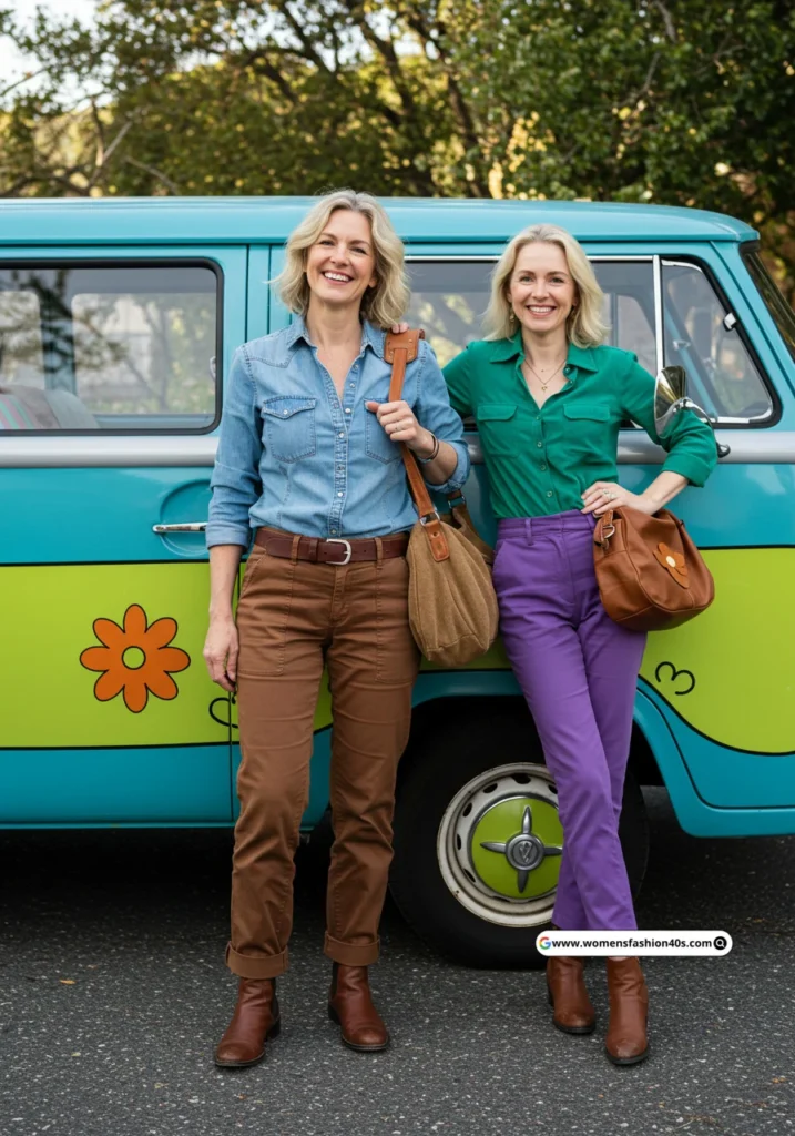 Shop Now from Amazon: Blue Shirt + Brown Pants + Green Top + Purple Pants + Baby Scooby Romper + Brown Bag