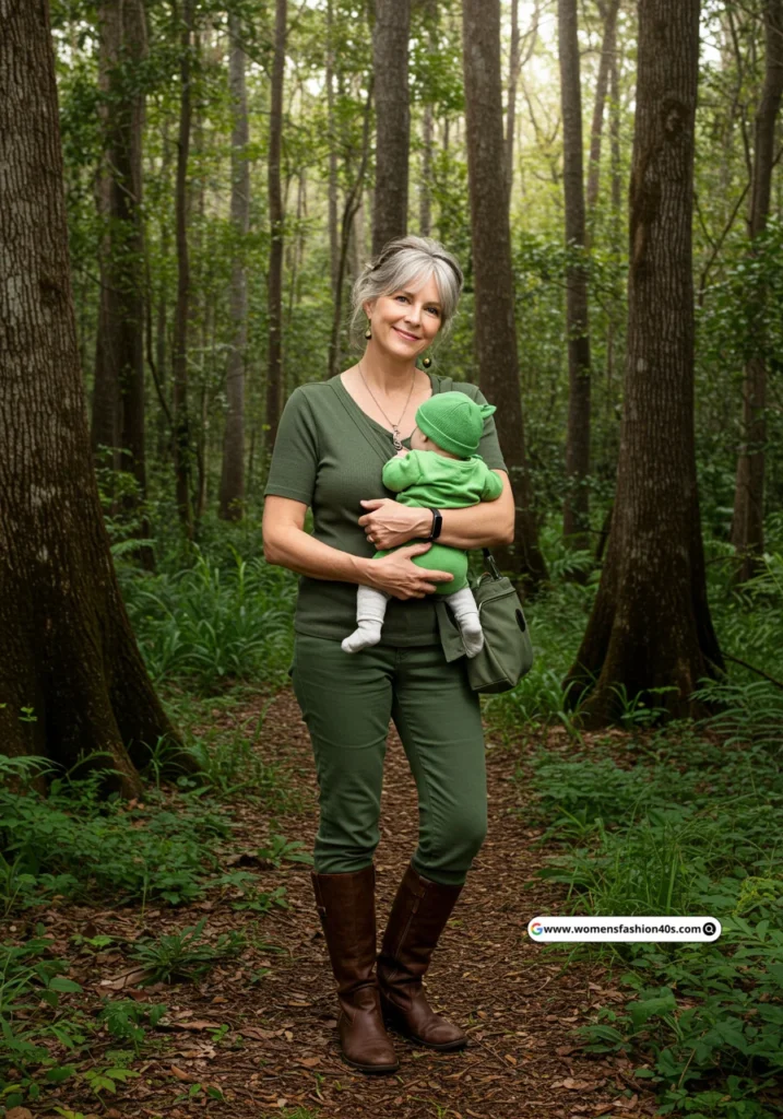 Shop Now from Amazon: Green Top + Green Pants + Princess Dress + Green Baby Outfit + Brown Boots + Green Bag