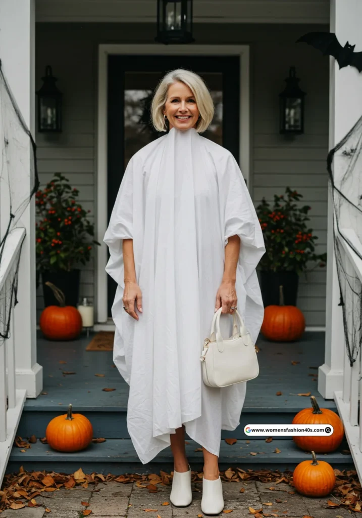 Shop Now from Amazon: White Sheet Costume + White Sheet Baby Outfit + White Shoes + White Bag