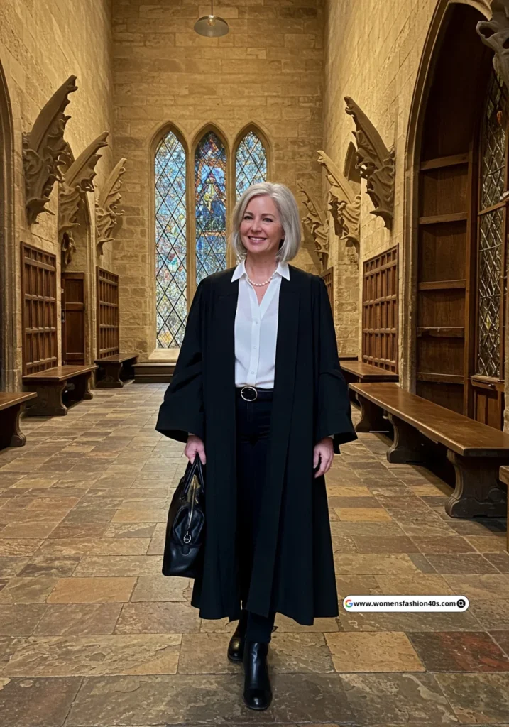 Shop Now from Amazon: Black Robe + White Shirt + Black Pants + Black Boots + Black Bag