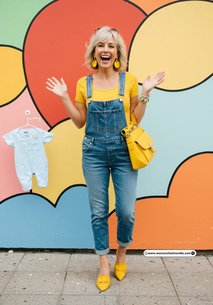 Shop Now from Amazon: Yellow Top + Blue Overalls + Yellow Shoes + Blue Baby Romper + Yellow Bag