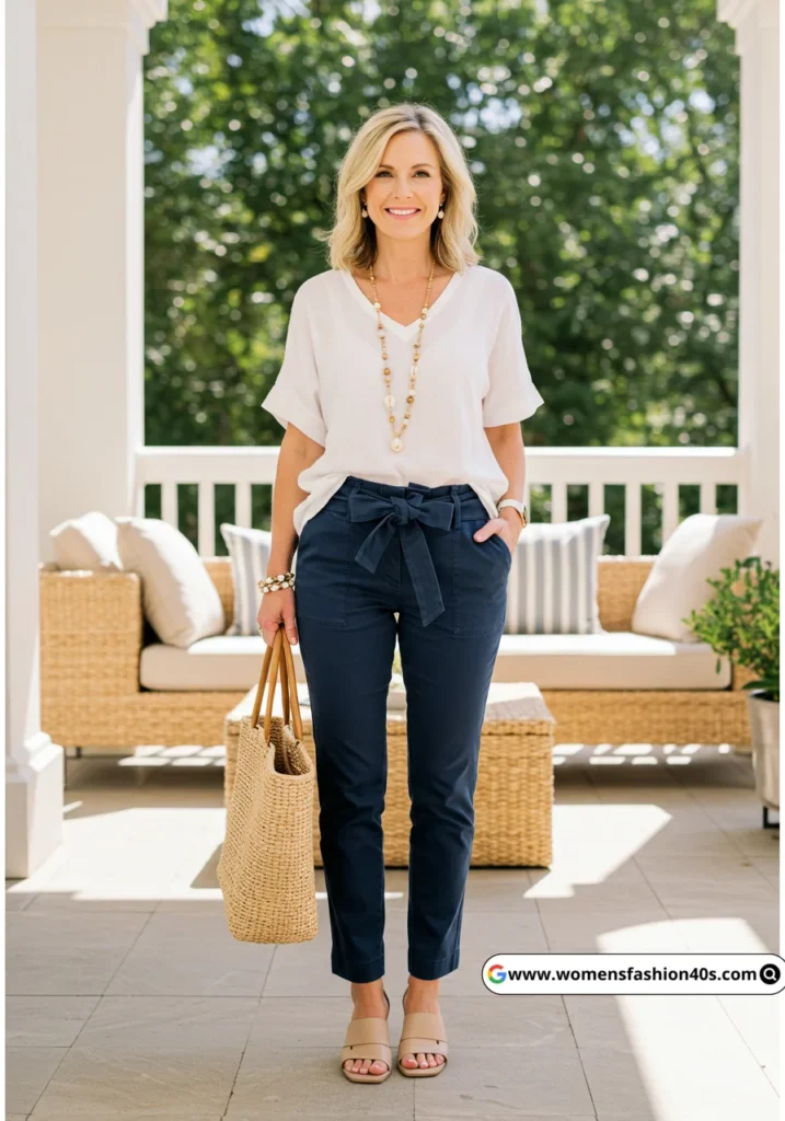 Summer beach vacations feel effortless in linen pants. Statista reports linen bottoms are increasingly popular among women 40+, making them a seasonal must-have.