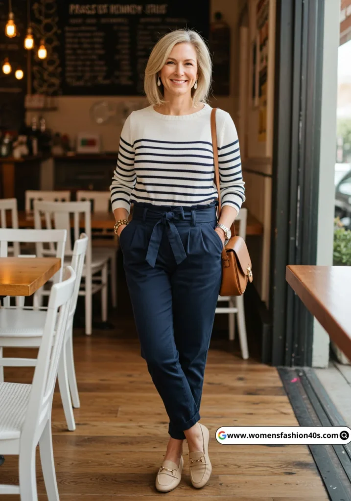 This combo became my weekend favorite. Statista reports striped tops are trending among women over 40, making this outfit effortlessly chic and modern.