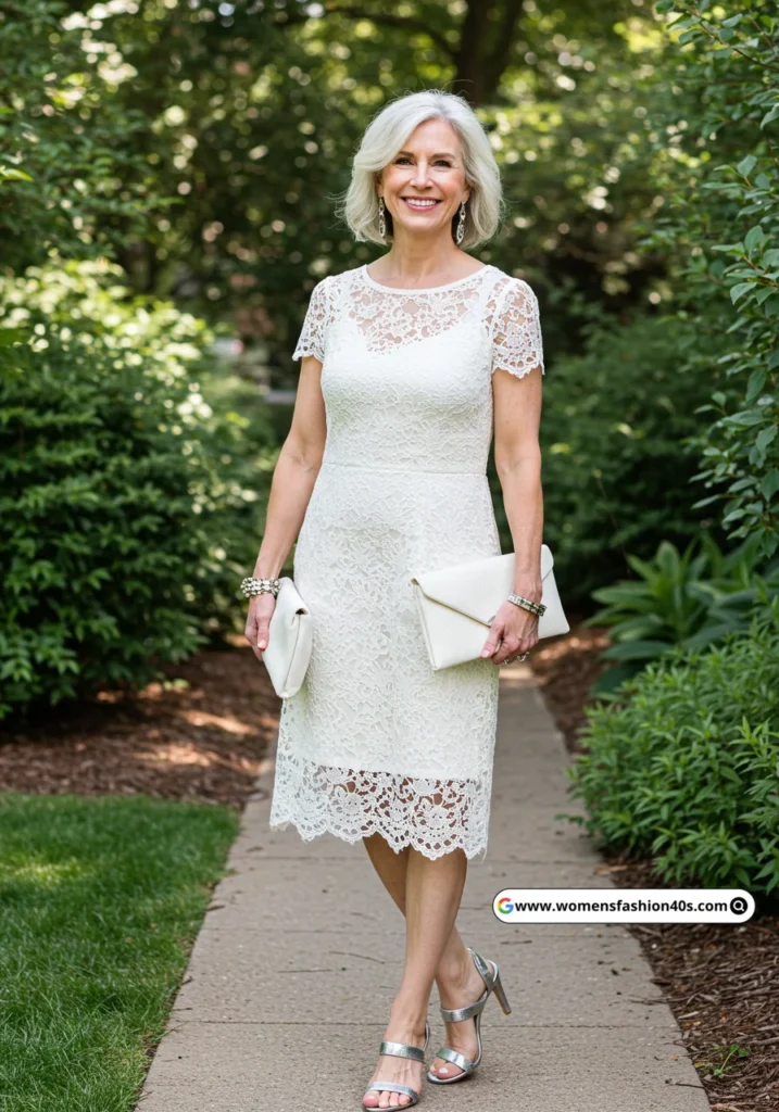 This white lace fit-and-flare dress was perfect for a daytime garden party, offering both comfort and elegance.