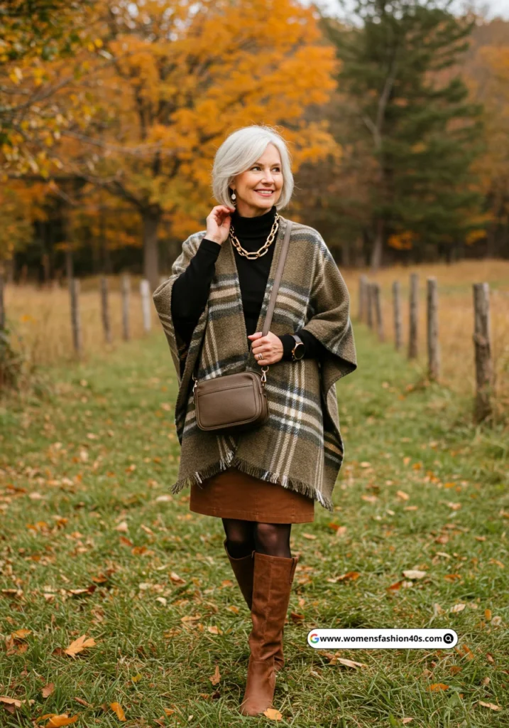 Layering this poncho over a skirt outfit instantly gave me a modern edge. Leather-trimmed ponchos are a growing trend in US fashion markets, blending elegance and practicality for women over 60.