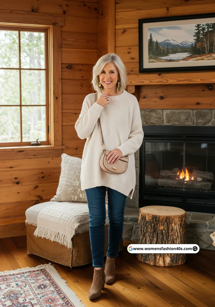 12. Cozy Cabin: Oversized Sweater with Slim Leg Jeans