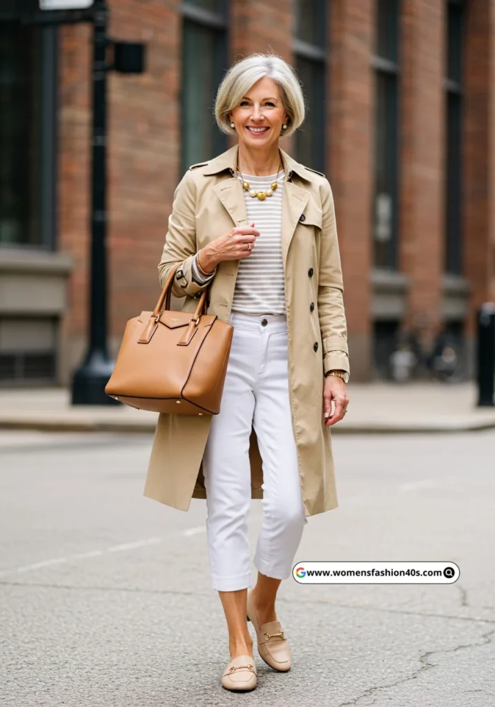 Exploring Chicago’s art districts, this trench coat set gave me an effortlessly chic look. The coat added structure while remaining lightweight for unpredictable weather. Google Trends notes a rise in searches for lightweight trench coats among women over 50 traveling in urban environments.