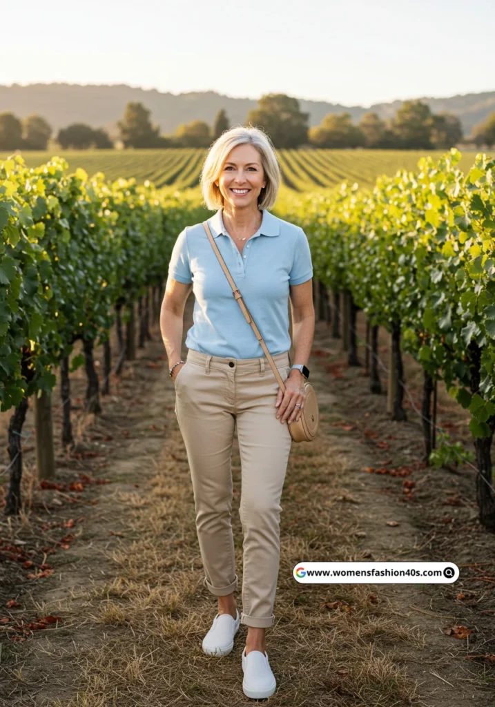 While touring vineyards in Napa Valley, this classic combo was my go-to for effortless style. Comfortable chinos and a breathable polo made it easy to walk and sip wine without feeling restricted. Statista shows polo shirts remain a top choice for mature travelers seeking casual yet polished looks.