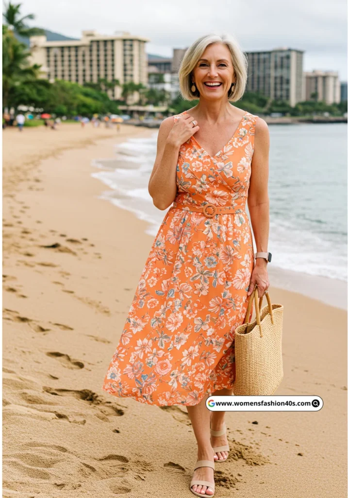 While visiting Hawaii, this dress became my go-to for beachside dinners and casual sightseeing. Its airy fabric kept me cool, and the vibrant coral pattern brightened every photo. Statista notes that floral prints are trending among women travelers over 50, making this dress both stylish and practical.
