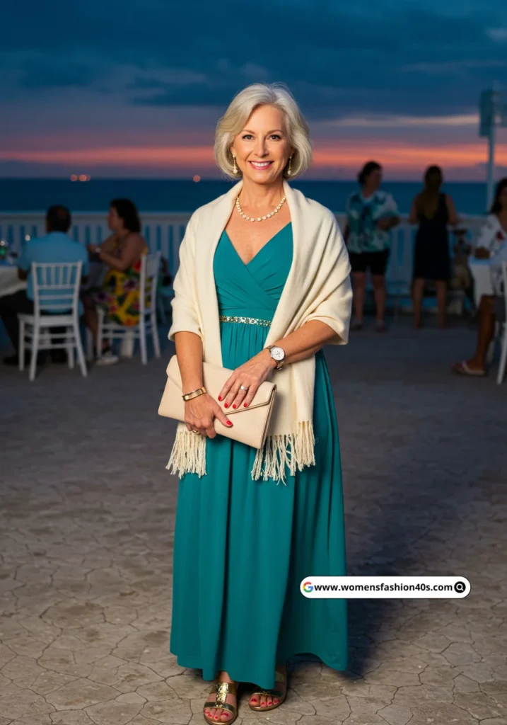 21. Sunset Soirée: Maxi Dress with Lightweight Shawl