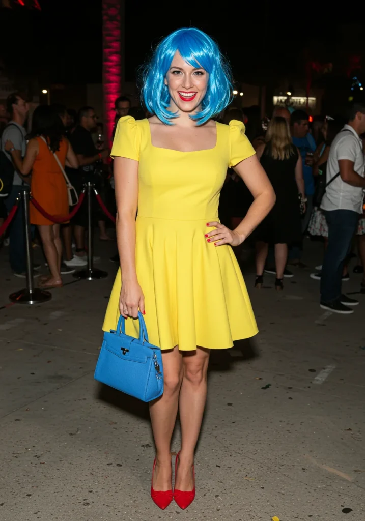 Shop Now from Amazon: Yellow Dress + Blue Wig + Red Shoes + Blue Bag
