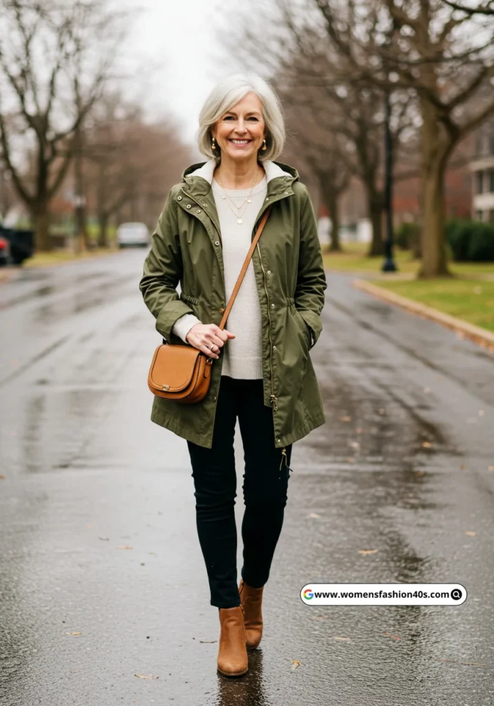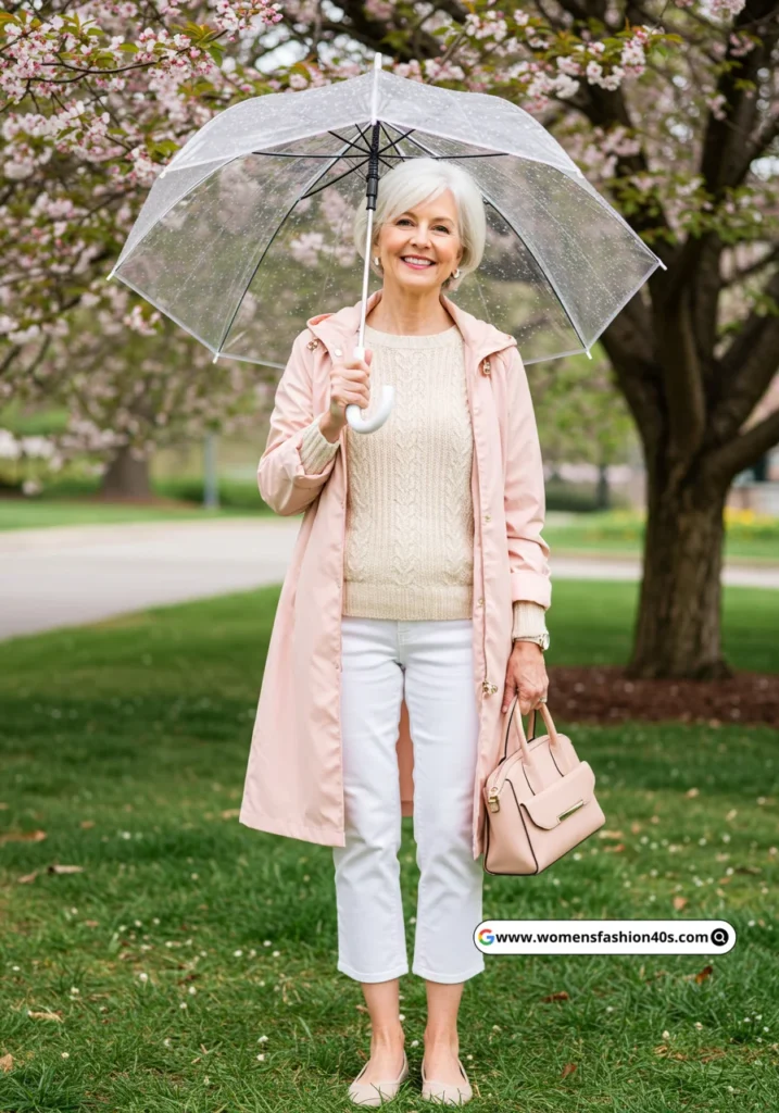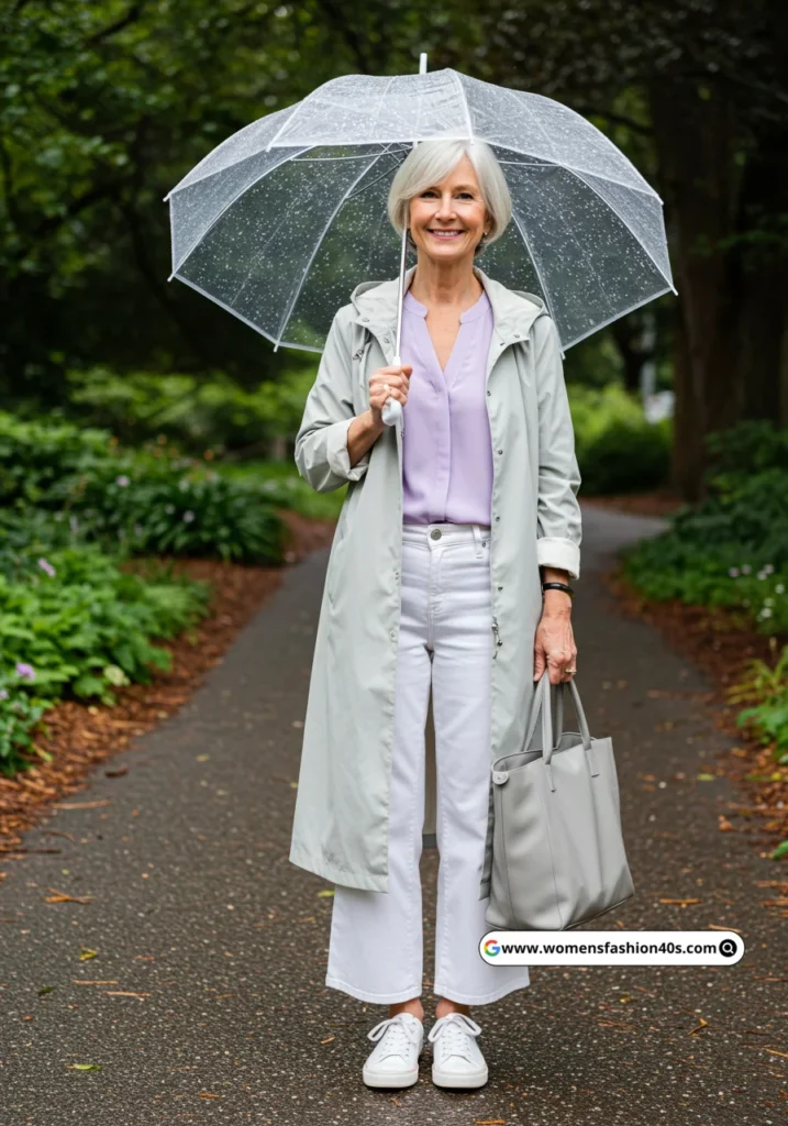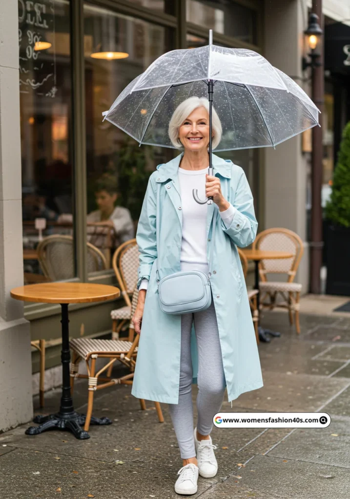 As Vogue and Harper’s Bazaar often highlight, investing in versatile outerwear for mature women not only elevates your wardrobe but also boosts your confidence in everyday situations. Whether you’re walking the streets of San Francisco or attending a spring garden brunch in Atlanta, these 21 outfits show that women over 60 can master rain-ready fashion while looking polished, stylish, and utterly unstoppable. Booyah!