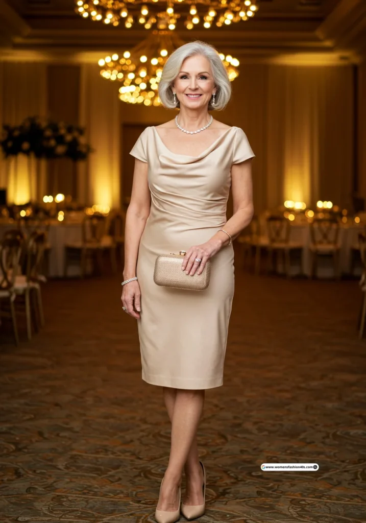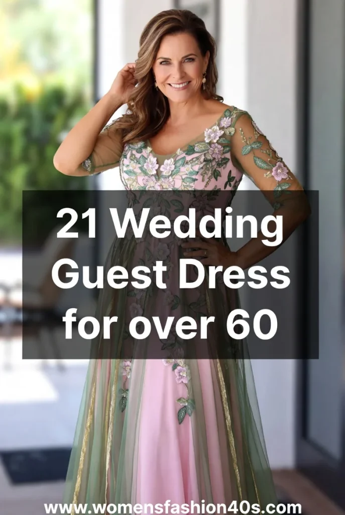 Pinterest Trends shows searches for “stylish wedding outfits for mature women” are soaring. Statista reports that women over 60 are investing more in timeless, quality pieces. Vogue and Harper’s Bazaar emphasize that fashion after 60 is about confidence, individuality, and subtle glamour.