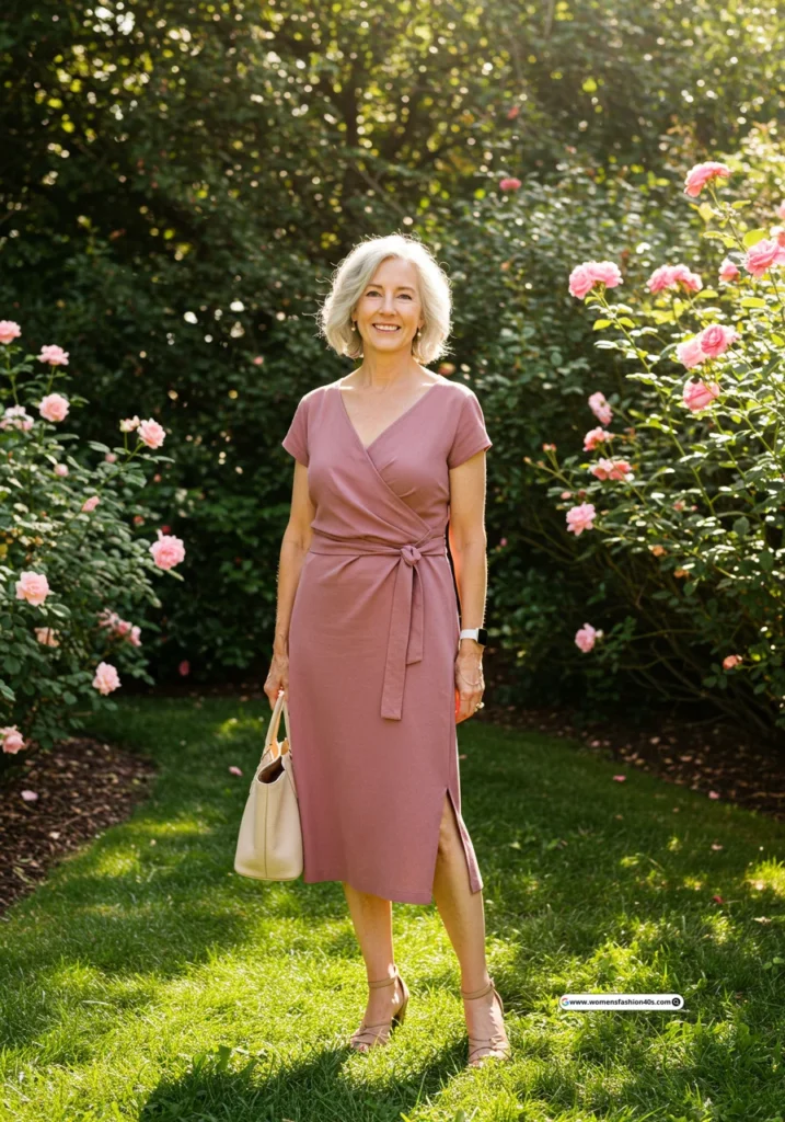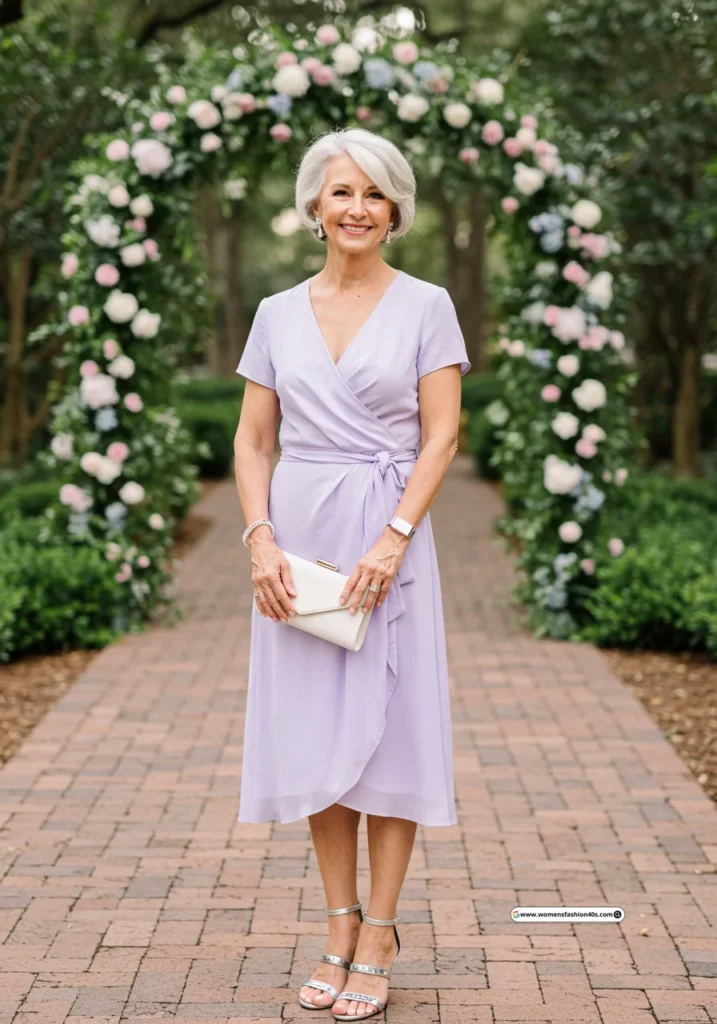 At a Charleston garden wedding, this pastel wrap dress gave effortless charm. Pinterest shows wrap dresses in pastel shades are increasingly saved by women over 60.