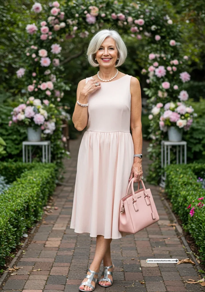 I tried this at a rooftop wedding in New York. Pinterest trends show pastel dresses are increasingly sought by women over 60, and the fit-and-flare silhouette offered comfort with sophistication.