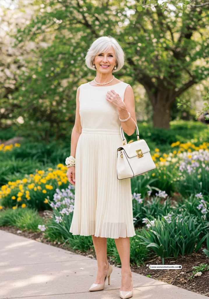 I wore this to a church wedding in Seattle. Google Trends shows pleated midis are trending for over 60s, offering graceful movement and timeless elegance.