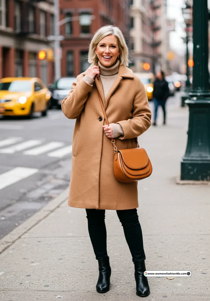Wearing this camel oversized coat instantly elevated my winter look in New York. Google Trends shows camel coats are trending nationwide, and pairing it with black skinny jeans gave me a polished, cozy vibe while running errands in chilly weather.