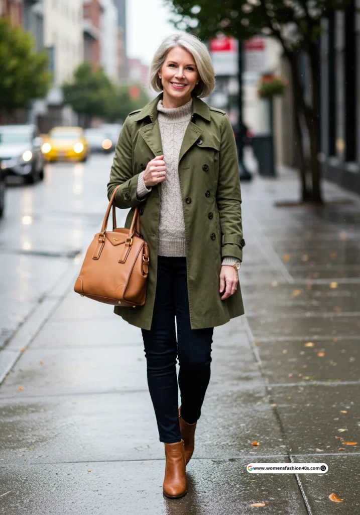 I felt effortlessly stylish in this olive trench coat in Seattle. Vogue notes trench coats remain a winter classic, and the layered look gave me a polished vibe even on rainy days.