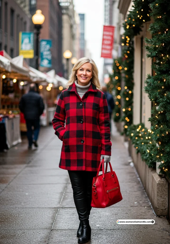 I felt playful and festive in this red plaid coat while strolling through holiday markets. Pinterest shows plaid coats gaining popularity, adding winter charm to everyday outfits.
