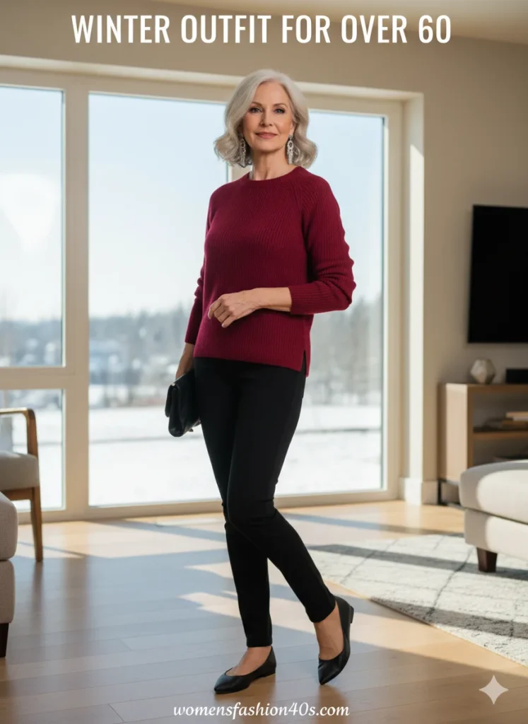 This outfit made me feel polished without trying too hard. According to Google Trends, “winter culottes over 60” is steadily rising—women love their comfort and elegance.