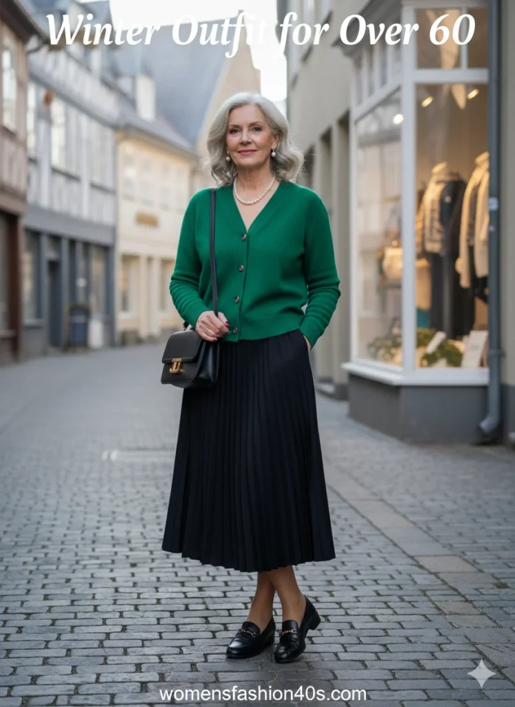 Pleated skirts always make me feel graceful. Pinterest shows pleated skirts becoming a winter staple, especially for women over 60 who love their movement.