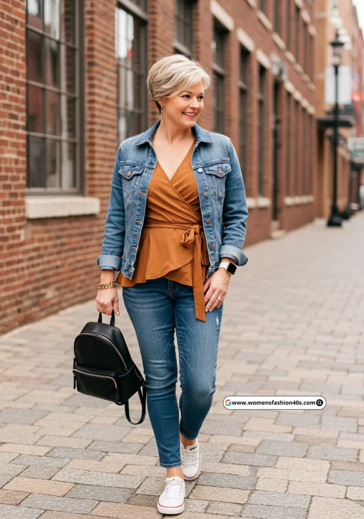 This was my weekend brunch outfit in Seattle—effortless yet put-together. Google Trends reports a steady rise in searches for “skinny jeans with wrap tops” among women over 40.